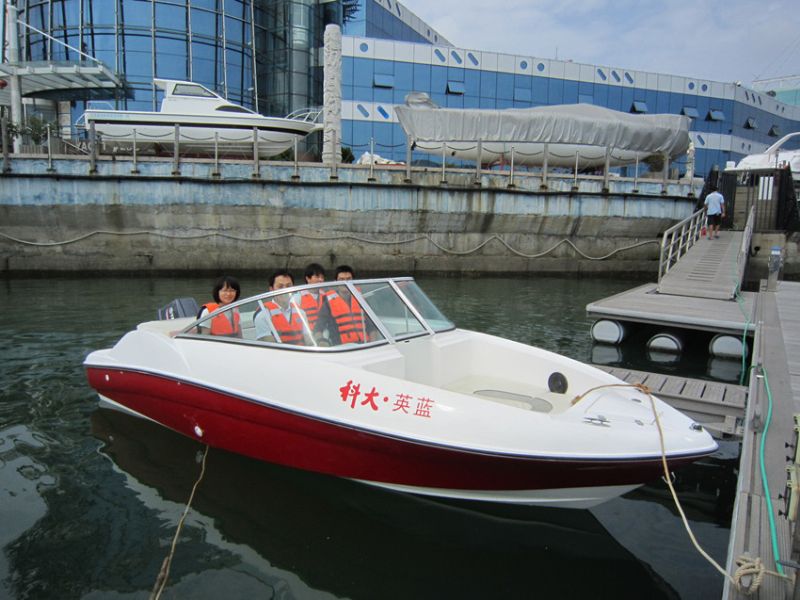 9月27日,由青岛科技大学英蓝船艇研究中心自主设计制造的“科大·英蓝”Y580号休闲快艇和“威尼斯人”号垂钓艇在青岛银海游艇俱乐部4号游艇码头成功试航。