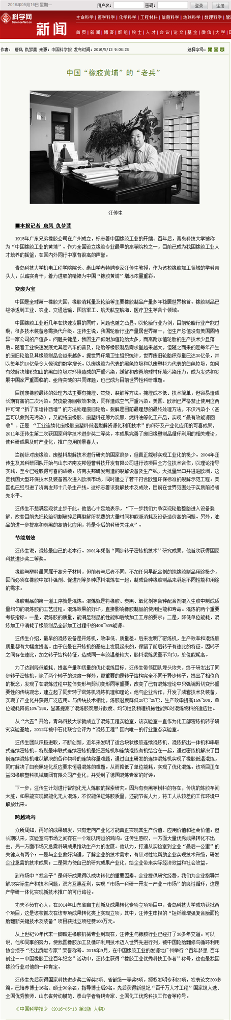 4月21日,应《中国科学报》的邀请,电子游戏推荐 院长汪传生教授接受了该报记者的专访。