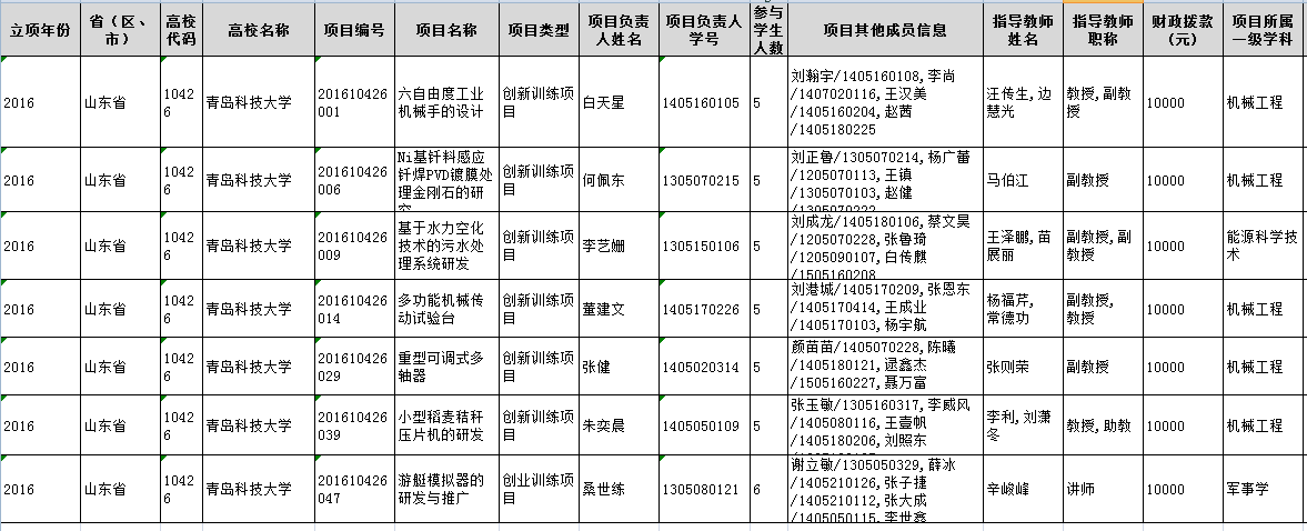 近日,教育部发布了《关于公布2016年国家级大学生创新创业训练计划项目名单的通知》(教高司函[2016]45号),青岛科技大学获批39个项目,其中创新训练项目36项,创业训练项目3项。