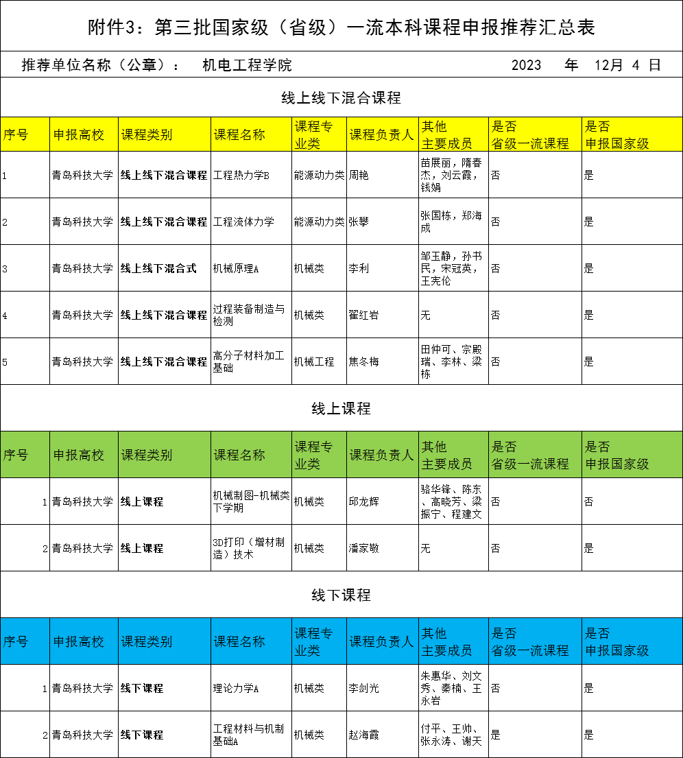 依据学校《关于开展青岛科技大学第三批山东省一流本科课程申报工作的预备通知》,学院组织符合条件的教师申报,共有9位教师提交材料,经院外专家评审,现拟推荐以下课程进入学校评审环节,并进行公示。公示期三天(2023年12月4日-12月6日),如有异议,请在公示期内向电子游戏推荐 教学办反映。