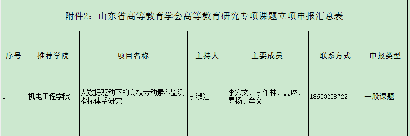 依据学校《关于开展2023年山东省高等教育学会高等教育研究专项课题申报工作的通知》学院组织符合条件的教师申报,共有1位教师提交材料,现拟推荐以下项目进入学校评审环节,并进行公示。公示期三天(2024年1月12日-1月14日),如有异议,请在公示期内向电子游戏推荐 教学办反映。