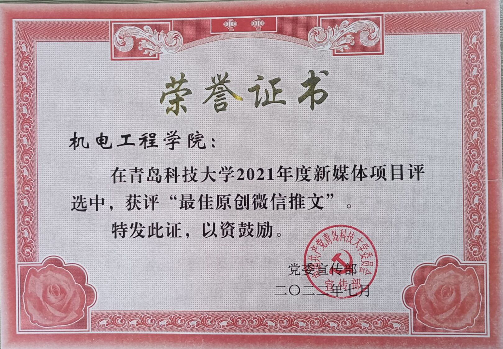 学院党委荣获2021年度思想政治工作先进集体,电子游戏推荐