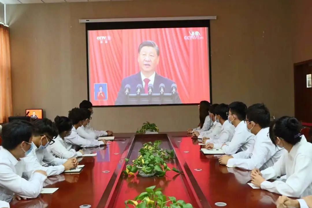各党支部、团学组织以集中、分散相结合的形式组织学生收看大会盛况。
