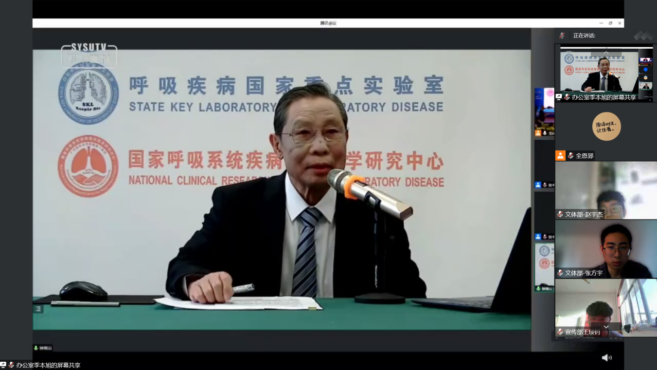 学生会线上组织观看钟南山院士主讲的全国高校抗疫大讲堂“新冠(Omicron)疫情动态及应对”的讲座。