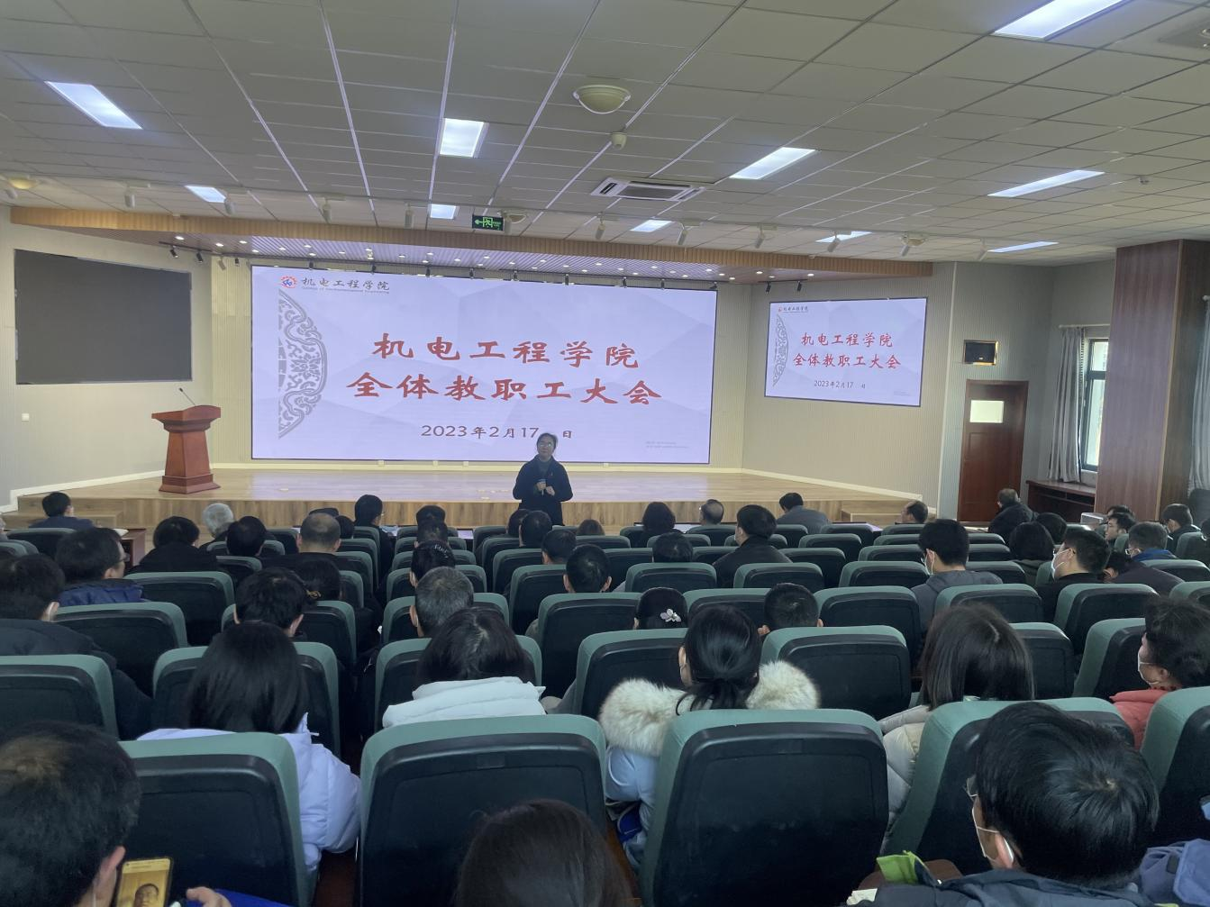 全体在机电楼530召开学院工作部署会。学院党委书记任允晓,院长何燕,党委副书记兼副院长肖强,副院长张斌、张卫锋、李剑光及学院全体教师参加会议。