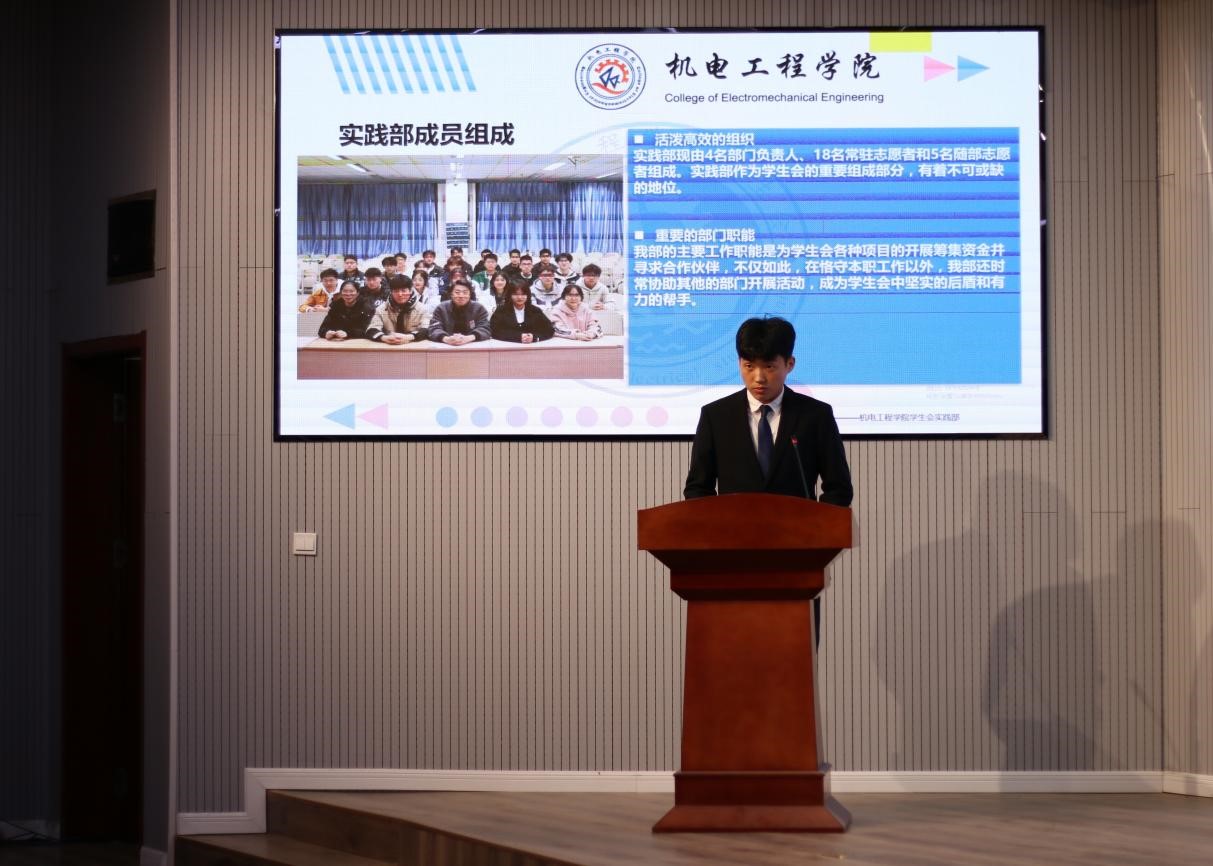实践部以拓宽交流为工作主题,加强学院与赞助方的沟通并建立良好的合作关系,为学生会提供了充分的物资支撑,是学院各项活动顺利开展的有力后盾。通过调动部门成员的积极性和主动性来配合完成各项活动,同时加强部门内部建设和完善工作内容。新学期将继续务实高效的推进工作,为学生会发展助力。