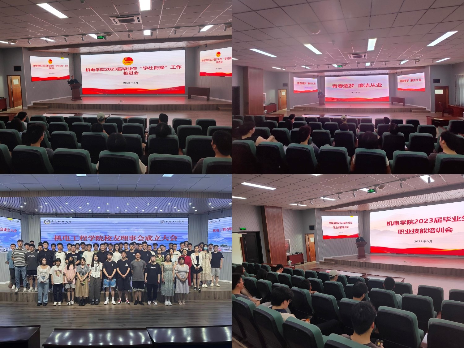 学院组织各班召开“最美的时光收获最美的成长”毕业季主题班会,各班以班级为单位,组织毕业生回顾四年大学生活的点点滴滴,深化毕业生对母校的归属感、认同感,培养毕业生校友情怀和感恩意识;开展“青春当燃志愿有我”志愿服务活动,2019级学生代表打扫实验室卫生,以实际行动彰显奉献担当,以实际行动发扬劳动精神;开展“奔向未来逐梦青春”主题毕业跑活动,以脚步丈量校园,纪念美好青葱岁月,回溯青科绚烂时光,全面推进学校体育综合改革进程,积极响应“爱体育·兴科大的号召;学院为1074名毕业生赠送校徽院徽,凝练在青科大求学的光“徽”岁月,刻下每一位毕业生的青春华“章”;开展“我与母校合个影”毕业照片征集活动、“尺素情长 青春无悔”毕业拍照打卡活动,记录了毕业生的青春笑脸,留下了专属于毕业季的美好与感动。