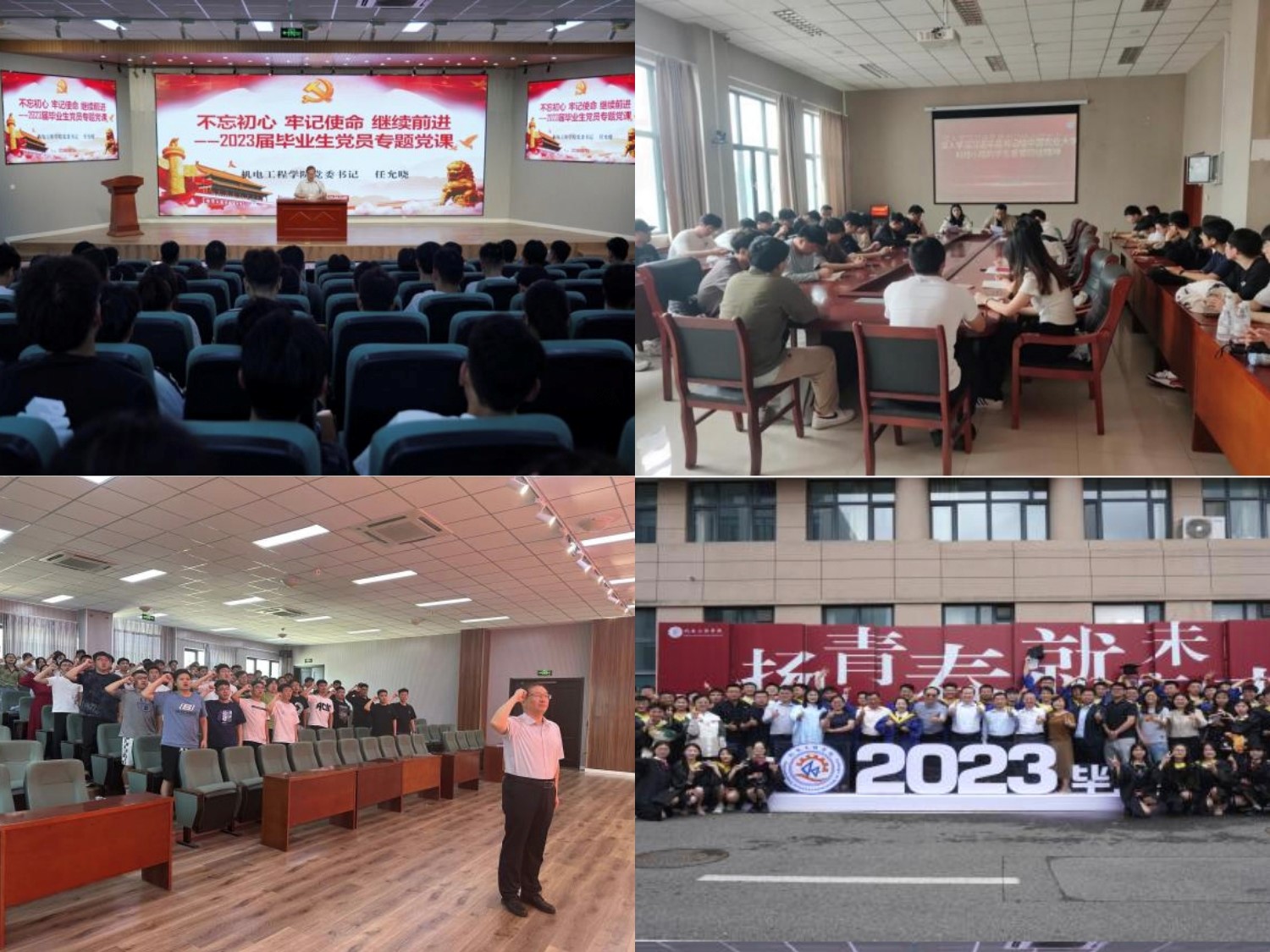 开展“不忘初心砥砺前行”毕业季特别主题党日活动、“最后一课”——2023届毕业生最后一堂思政课等毕业季主题思想教育活动,进一步推进主题教育走深走实,激发学生党员感恩奉献之心和报国成才之志,激励广大毕业生坚定历史自信、筑牢历史记忆,深刻领会学习习近平总书记给中国农业大学科技小院的回信精神,发挥青年典型模范带头作用,引导毕业生进一步坚定不移听党话、跟党走,将个人理想与祖国发展、社会需求紧密结合