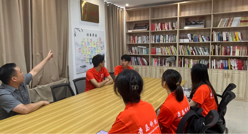 团委书记邀请调研团成员一同进入本企业特色文化之地“员工书房”,解答调研团成员提出的问题。团队更深入地了解了贵州辣椒产业的现状、贵州发展辣椒产业的优势及前景、辣椒城的市场营销渠道及产业链发展、辣椒城的发展对当地农民工的影响、企业对乡村振兴的推动,还有贵州辣椒产业面临的问题,及辣椒城对大学生返乡就业的看法和提供的机会。