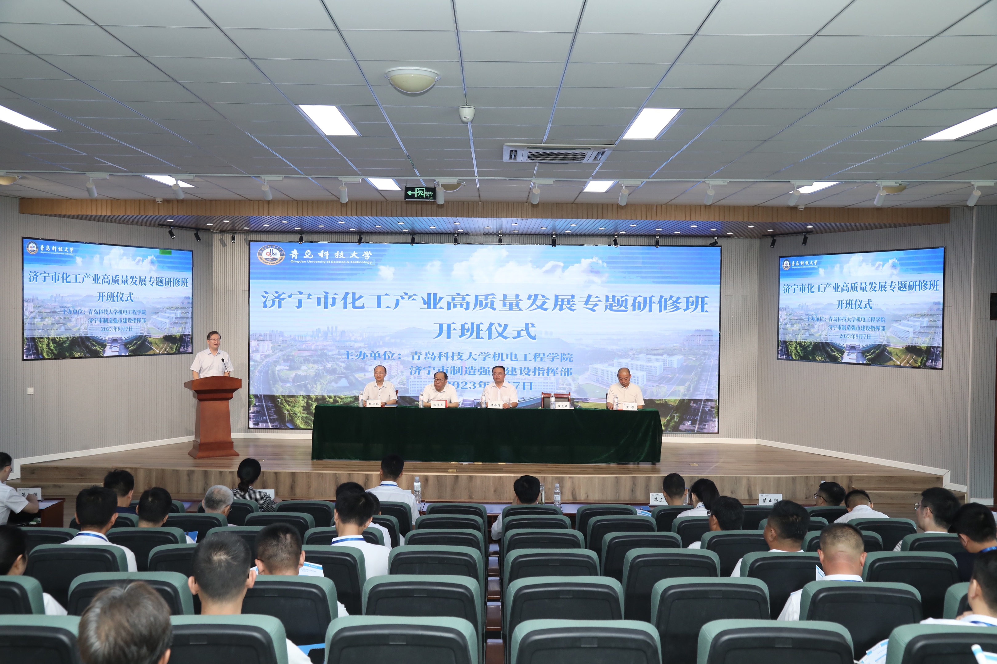 8月7日,济宁市化工产业高质量发展研修班在学院530会议室举行开班仪式。济宁市制造强市建设指挥部高端化工产业集群发展专班主任韩丙海、青岛科技大学济宁融合创新发展中心主任孙立军、合作发展处副处长罗毅、学院党委书记任允晓以及全体学员参加。开班仪式由学院副院长杨化林主持。