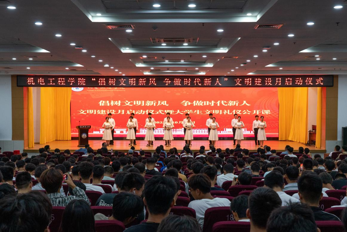拍摄的宣传片《文明》,呼吁大家讲文明树新风,争当文明使者,谱写文明校园新篇章。学院礼仪队进行文明礼仪成果展示,用动作和韵律诠释了对礼仪文化的理解与传承。