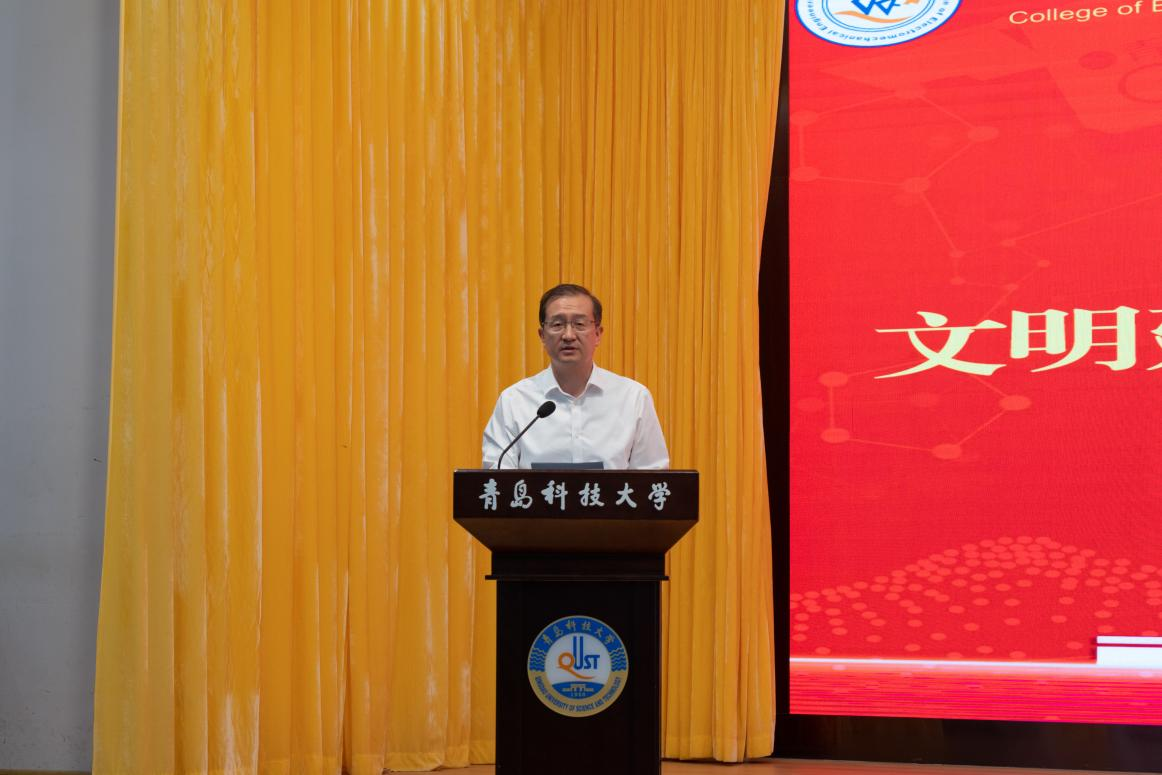 学生工作处处长王丽致辞,对文明建设月的启动表示热烈的祝贺,希望广大学生提高站位、凝聚共识,牢牢把握开展文明建设月的内涵和要义;锚定目标、真抓实干,多措并举提升文明创建的质量和实效;走在前列、奋发有为,挺膺担当争做学校文明创建的排头兵。寄语机电学子以此次文明创建为契机,进一步强化自身修养、涵养优良学风、规范行为习惯,说文明话语、讲文明礼仪、守文明纪律、遵文明规矩,展现青科大学子应有的模样。
