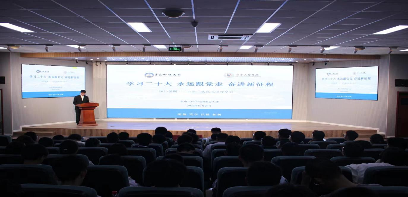 团委于10月26日在机电楼530会议室举办“学习二十大 永远跟党走 奋进新征程”2023暑期“三下乡”社会实践成果分享会。学院团委邢坤老师、宋达老师,穆青青老师和2023级“青马工程”培训班“志愿先锋”代表参与本次活动。