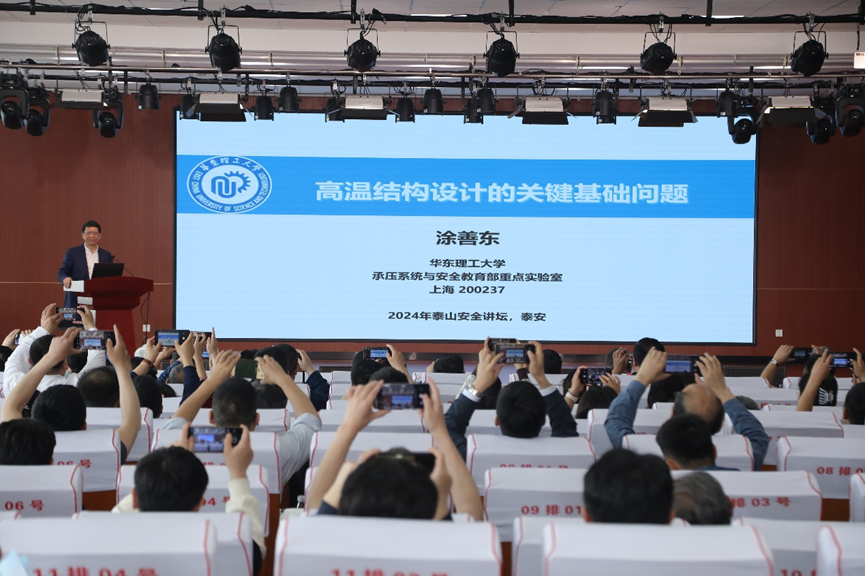 首届“泰山安全讲坛”于2024年4月20日至22日在山东省泰安市隆重举行。此次讲坛以“革新设计理念,提升本质安全”为主题,吸引了来自全国各地的专家学者、企事业单位代表齐聚泰山脚下,共同探讨承压设备安全性能提升的新理论、新技术和新方法。电子游戏推荐官网过程装备与控制工程系吴俊飞、郭建章、骆晓玲、段振亚、胡德栋、毕海胜、李涛、贾文广等老师参加本次会议,段振亚教授作了主题报告。