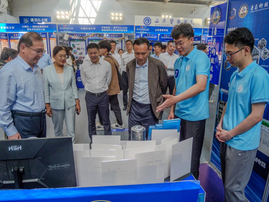 决赛期间,共青团山东省委书记殷世逸一行看望电子游戏推荐官网参赛作品展区,听取作品情况汇报,与参赛同学亲切交流,勉励广大学子勇担时代使命,厚植创新沃土,激发创造潜能,为中国式现代化挺膺担当。