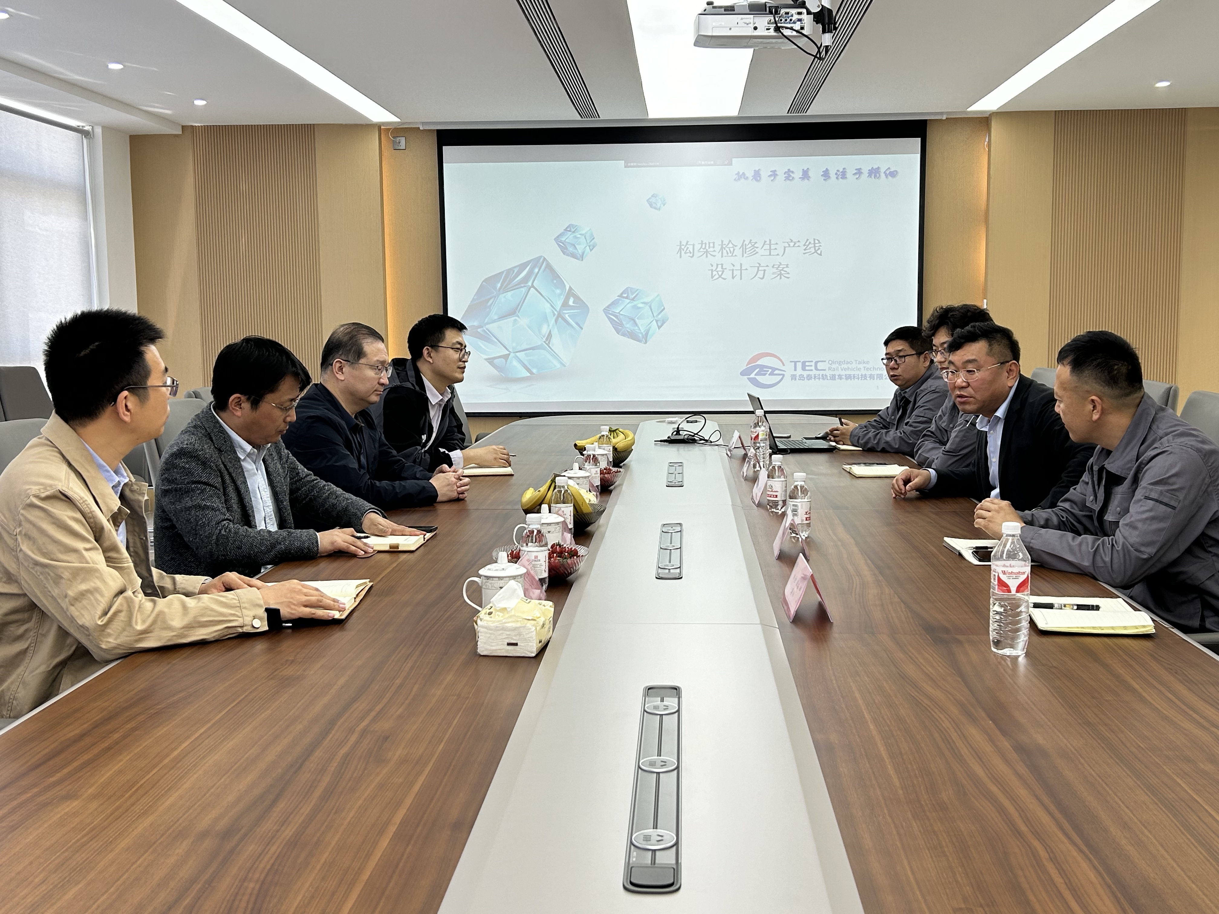 智能制造系副教授王廷利、辅导员杜康赴青岛泰科轨道车辆科技有限公司参观交流。青岛泰科轨道车辆科技有限公司董事长杨传良、人事行政部经理张先凤以及技术部门相关负责人参加本次会议。