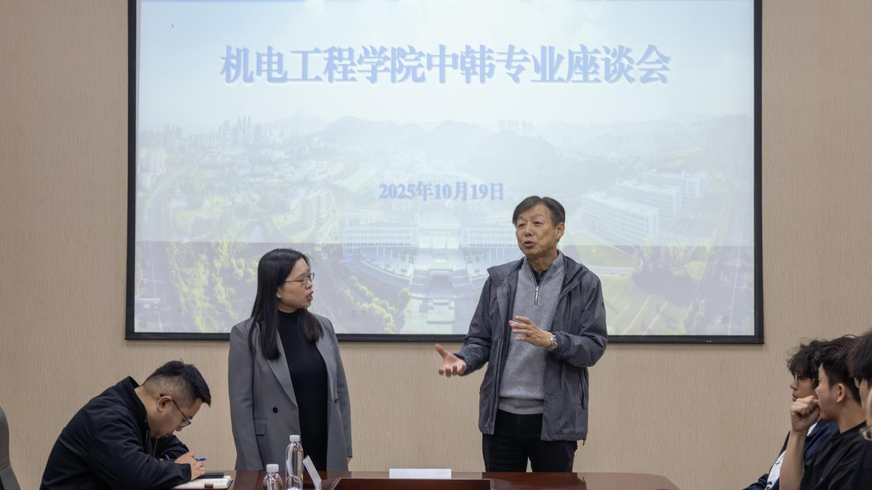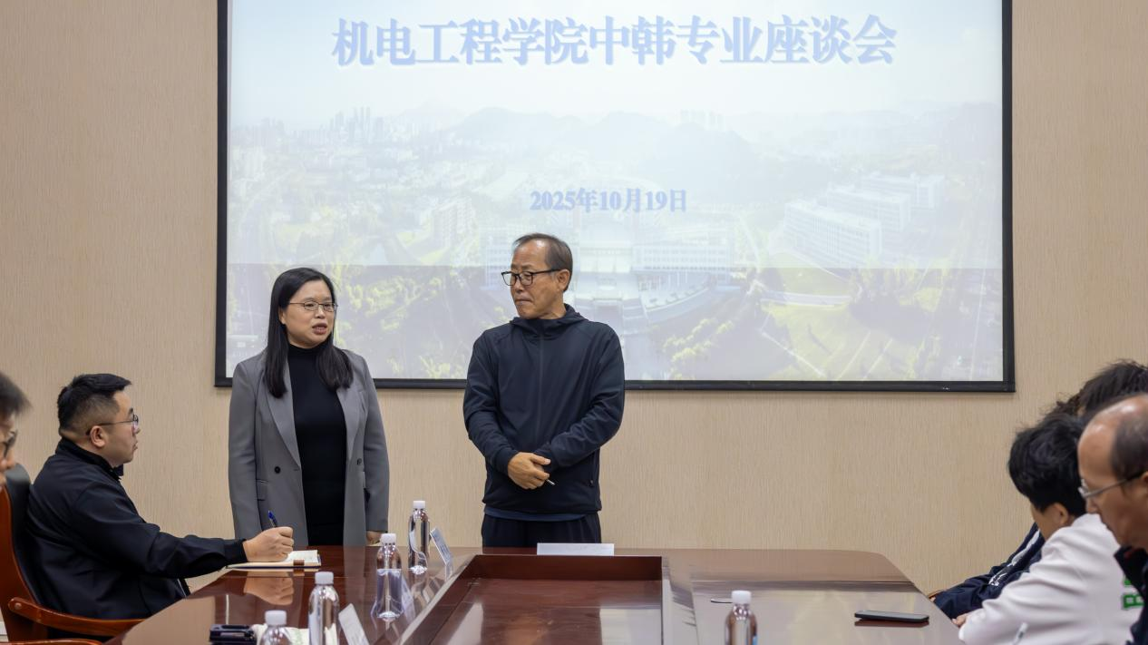 在机电楼D3-518会议室举办2024级中韩专业座谈会。韩国汉阳大学梁铉益教授、赵南圭教授出席会议并为学院出国意向学生答疑解惑,学院2024级出国意向学生参加会议,学院副院长杨化林主持会议。