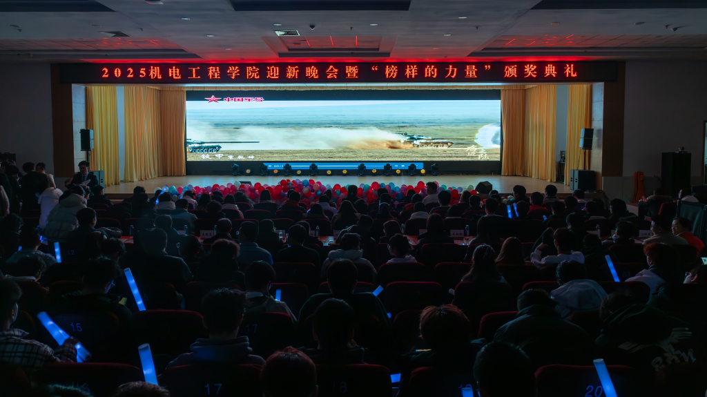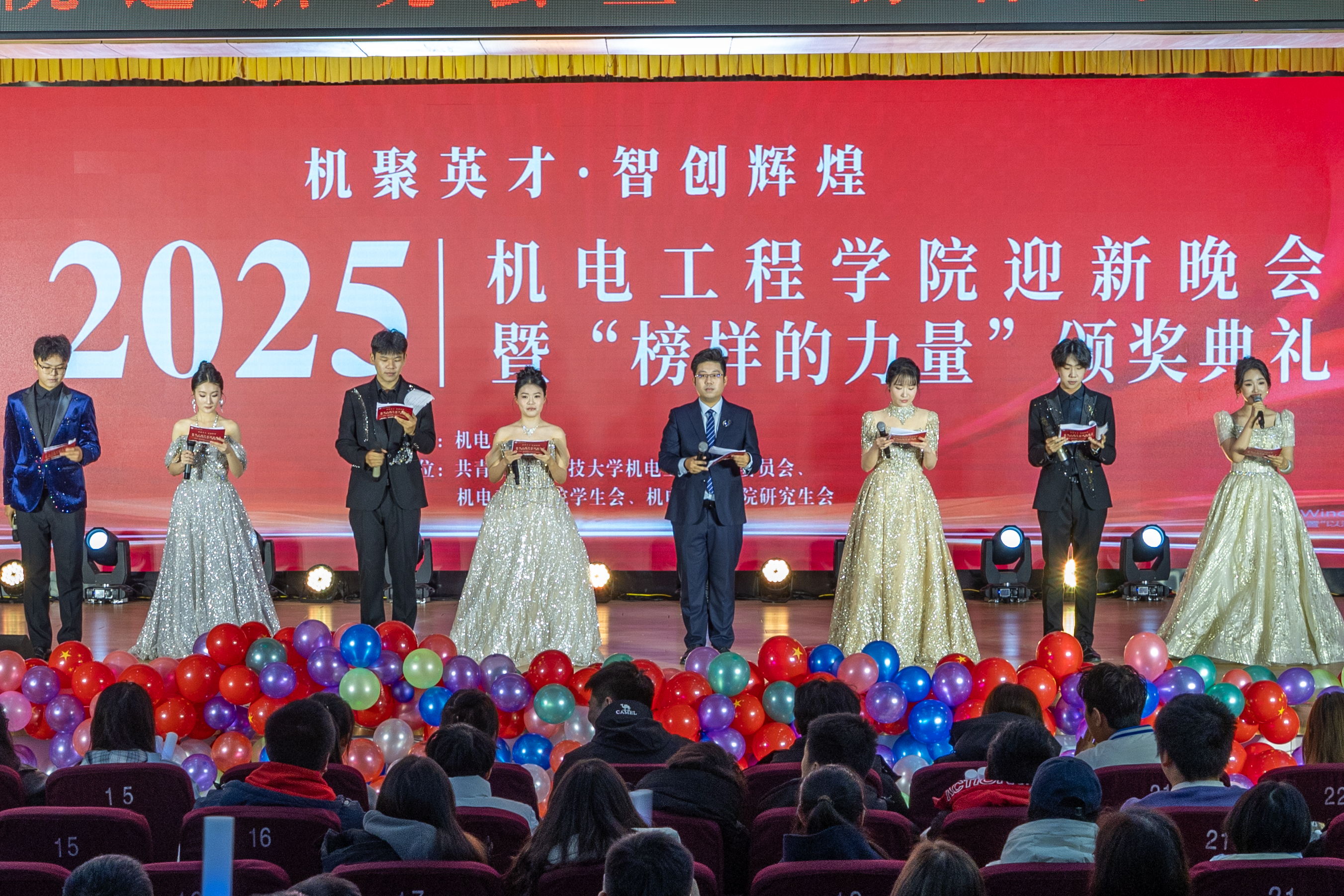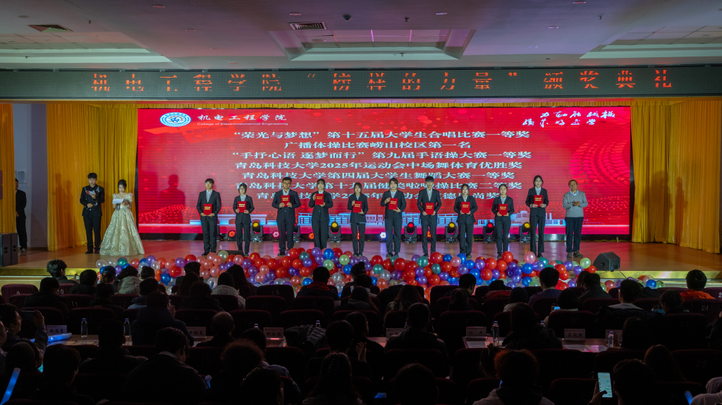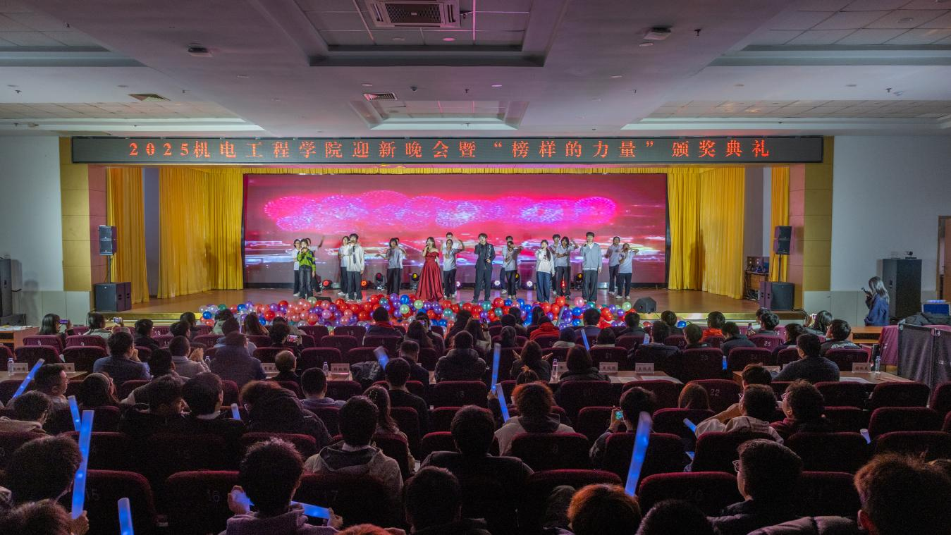 2025“机聚英才·智创辉煌”迎新晚会暨“榜样的力量”颁奖典礼在崂山校区第二报告厅举行。学校党委宣传部副部长、全国红润初心工作室负责人贾可好,学院党委副书记兼副院长杨小明、副院长杨化林、张卫锋、李剑光、刘治明,以及2025级班主任、系教研室主任、全体专兼职辅导员和2025级学生参加活动。