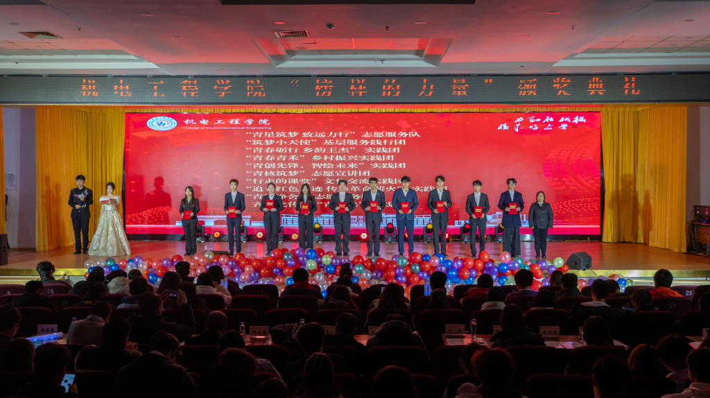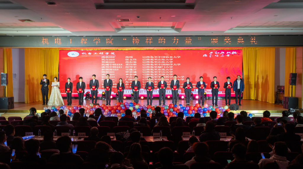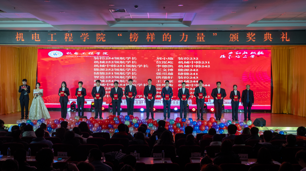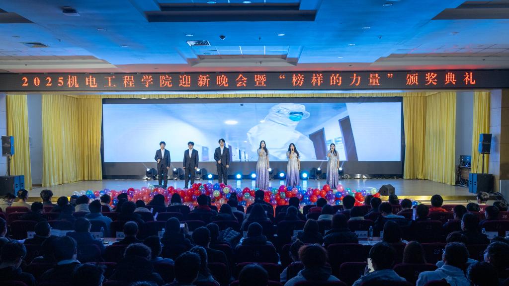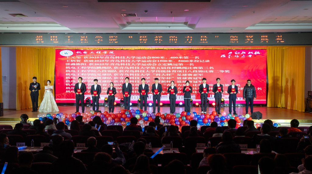 2025“机聚英才·智创辉煌”迎新晚会暨“榜样的力量”颁奖典礼在崂山校区第二报告厅举行。学校党委宣传部副部长、全国红润初心工作室负责人贾可好,学院党委副书记兼副院长杨小明、副院长杨化林、张卫锋、李剑光、刘治明,以及2025级班主任、系教研室主任、全体专兼职辅导员和2025级学生参加活动。
