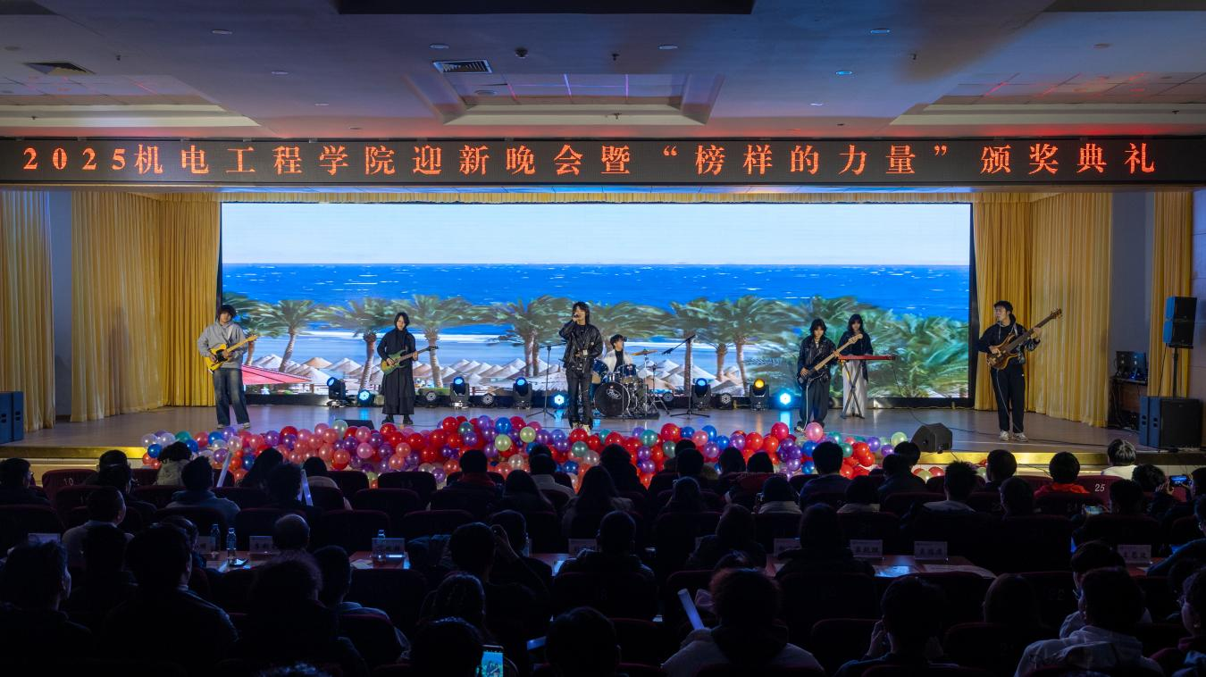 “聚力·荣耀”合唱团以纯人声版硬核唱响《美丽的草原我的家》,悠扬和声中满是团队协作的力量与机电人的赤诚;幕布剧《我记得》复刻新生入学以来的温暖瞬间,勾起共同回忆;小品《诈骗风云》以诙谐方式普及反诈知识,兼具趣味性与教育意义;乐队演唱《想去海边》节奏明快,瞬间点燃全场热情。最后全场师生共同唱响《相亲相爱》,为晚会画上温馨句号。整场晚会节目形式多样、内容鲜活,师生线上线下互动频繁,氛围热烈。