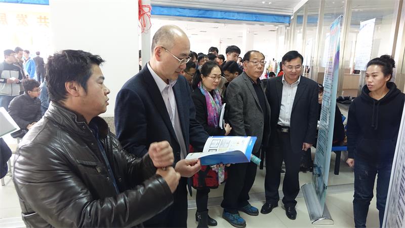 党政领导何燕、孙立军、王伟,中德学院党政领导李镇江、王永波等到招聘会现场指导工作,就专场招聘会相关问题与到会招聘单位负责人以及求职毕业生进行了亲切交谈。