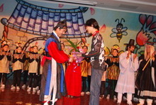 11月28日下午,明德楼第二报告厅成功上演了两场别开生面的音乐剧“Kongju & Paju”。该音乐剧由韩国全州大学音乐系金光顺教授创作,演员也全部来自韩国。在整个演出过程中,他们的精彩表演,让在场观众欣赏到了地道的韩国音乐剧。