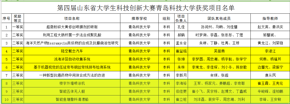 近日,山东省教育厅下发《山东省教育厅关于公布第四届山东省大学生科技创新大赛获奖名单的通知》(鲁教高字[2017]12号)。青岛科技大学荣获优秀组织奖,共荣获一等奖1项,二等奖5项,三等奖4项,其中电子游戏推荐