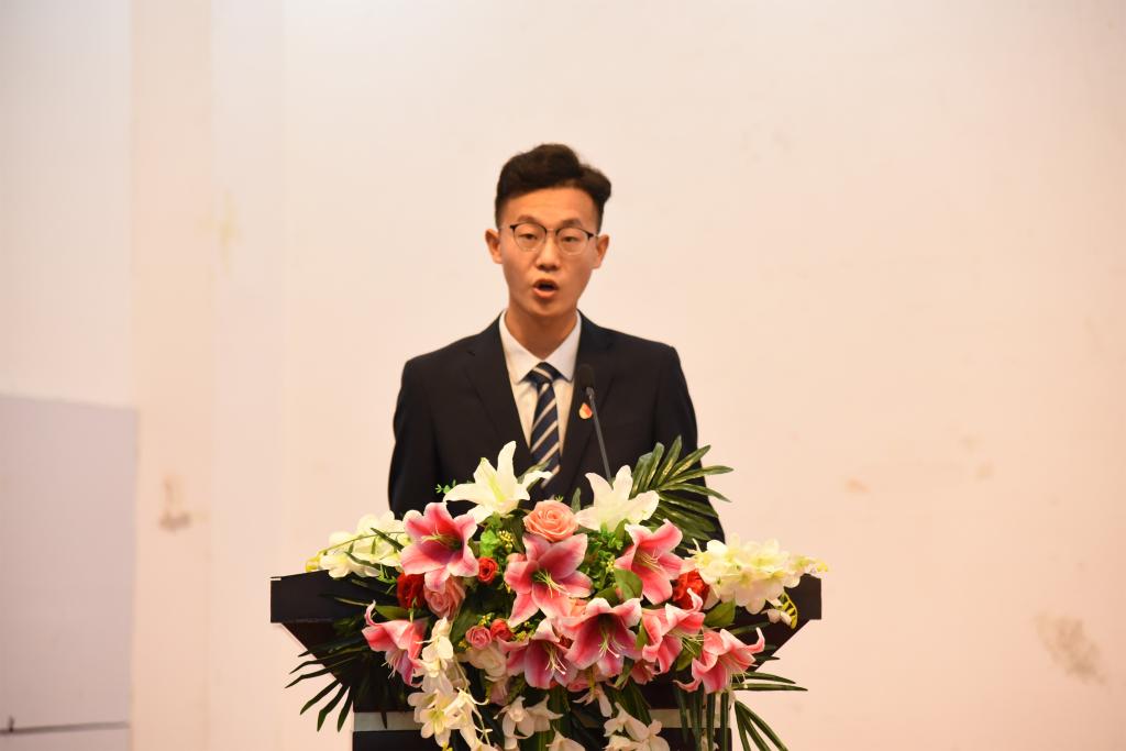 第十八届学生委员会第二任主席毕岚森和2018级新生代表于燕妮分别发言。