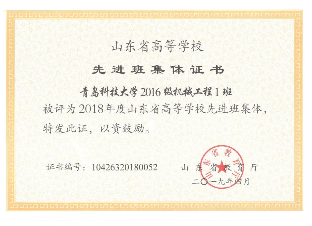 电子游戏推荐官网刘东喜、张旭、刘冰桀、范世缘同学被确定为山东省高等学校优秀学生,毕岚森、董佳乐、葛泉志被确定为山东省高等学校优秀学生干部,机械实验161班被确定为山东省高等学校先进班集体。