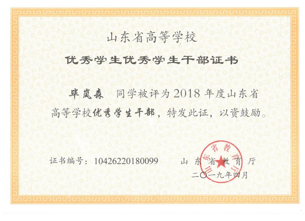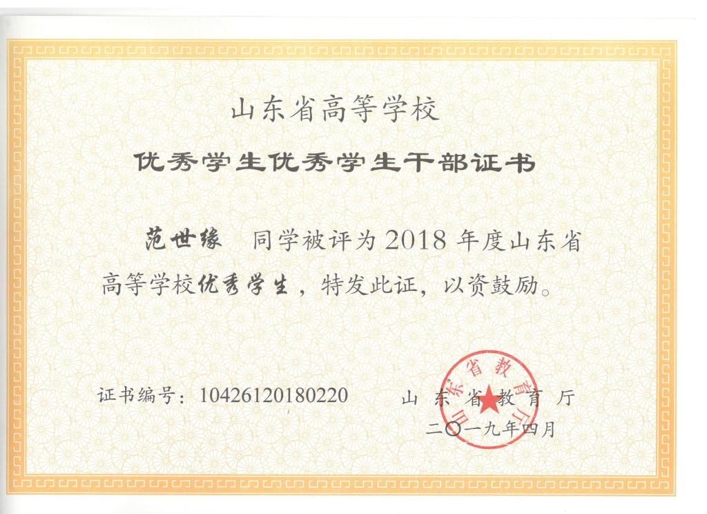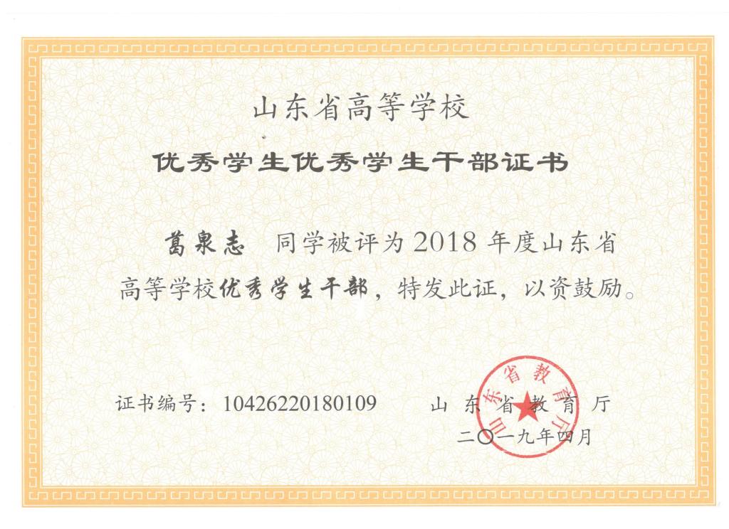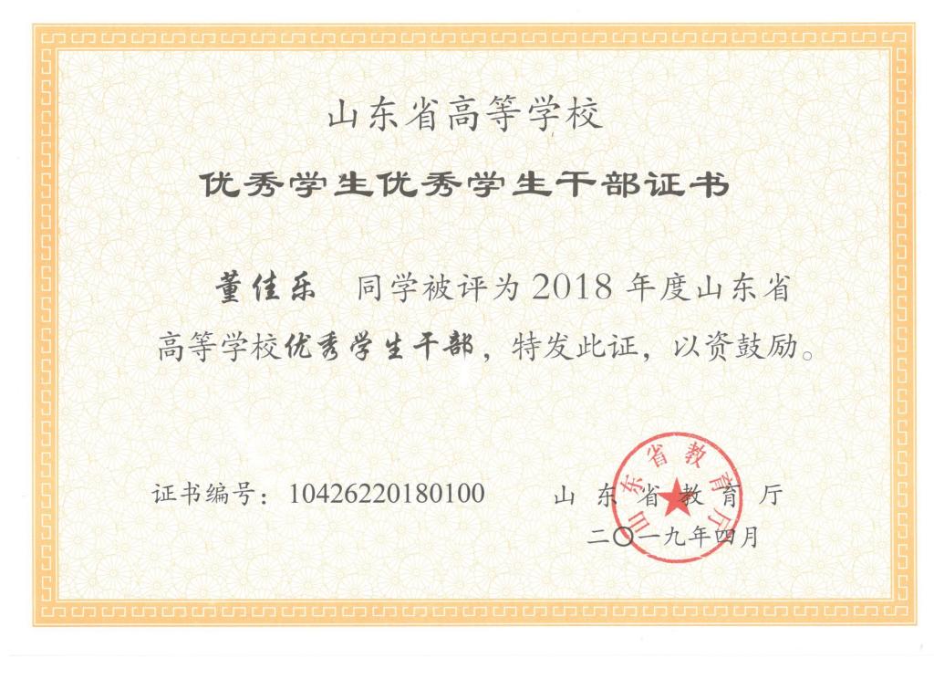 近日,山东省教育厅发布了《关于公布2018年度高等学校优秀学生优秀学生干部和先进班集体评选结果的通知》。电子游戏推荐 7名学生和1个班集体获2018年度省级优秀学生、优秀学生干部和先进班集体荣誉称号。