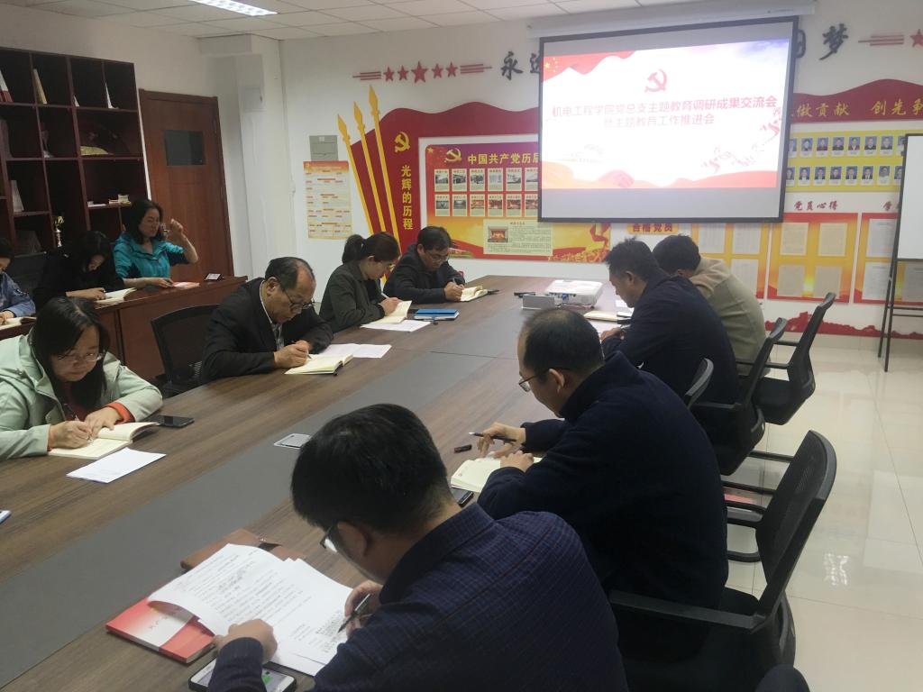 党总支于机电大楼505会议室召开调研成果交流会暨主题教育推进会,学院领导班子成员及各党支部书记参会,会议由党总支副书记兼副院长王伟主持。