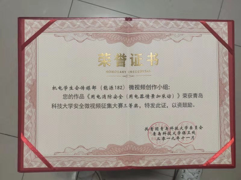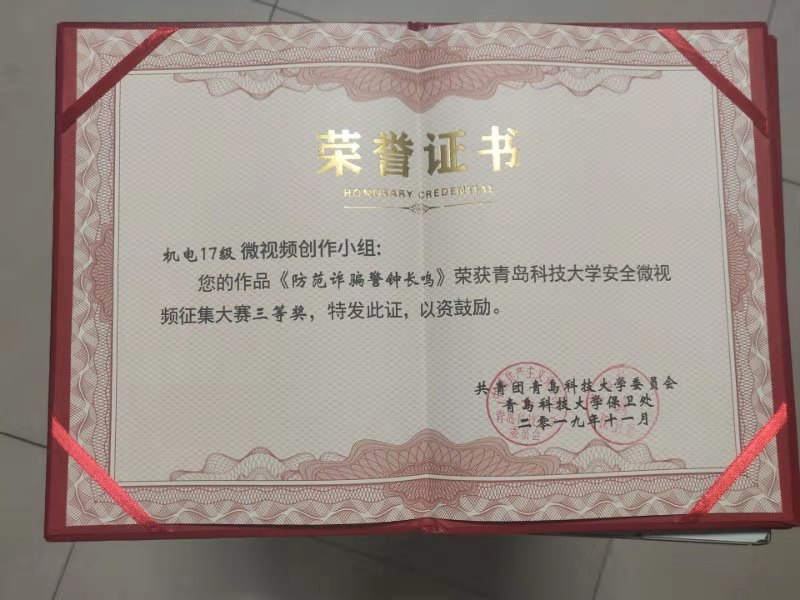 在此次征集活动中获得佳绩。其中,17级学生制作的《防范诈骗警钟长鸣》、机电学生会传媒部(能源182)制作的《用电消防安全(用电器情景加采访)》荣获三等奖,电子游戏推荐