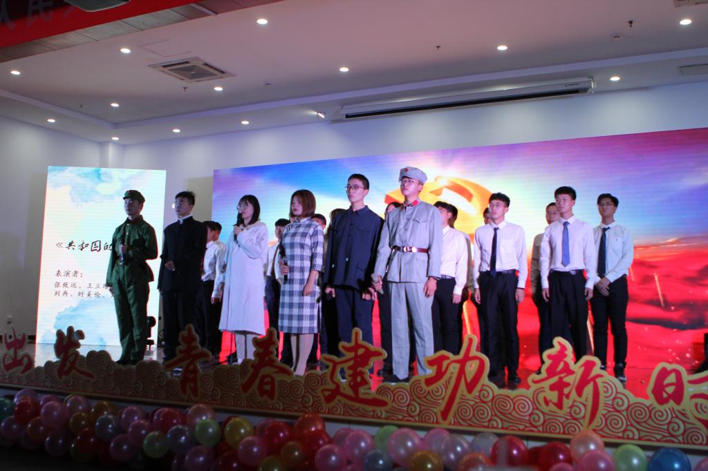 整场晚会精彩不断,高潮迭起,并在情景剧《共和国的脊梁们》和一首《我爱你中国》全场合唱结束晚会,赢得台下阵阵为国之脊梁和为他们崇高精神喝彩的欢呼声。歌声中饱含着的铿锵自信和对未来的无限希望,闪烁着机电学子们青春与梦想的光芒,激励着19级机电学子们学子们不忘初心,紧跟党走,激扬青春,追逐梦想,以优异的综合成绩为祖国华诞献礼。