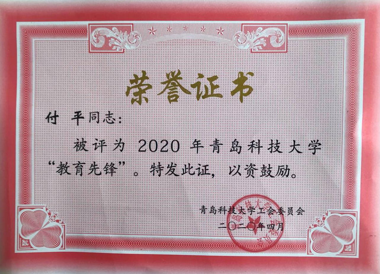 近日,在青岛科技大学工会委员会公布的《关于表彰2020年青岛科技大学“教育先锋号”“教育先锋”的决定》中,电子游戏推荐官网机械工程及自动化系荣获2020年“教育先锋号”,付平老师荣获2020年“教育先锋”。