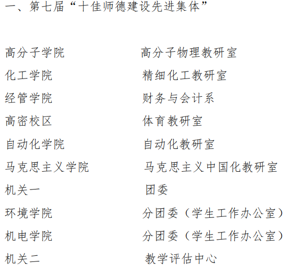 分团委(学生工作办公室)获第七届“十佳师德建设先进集体”称号,王作辉老师获第十届“十佳育人标兵”荣誉称号,过程装备与控制工程系、新能源科学与工程系、电子游戏推荐