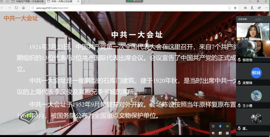 分团委组织部带领各团支部团员青年积极开展“网上展馆参观”活动。通过参观中国共产党第一次全国代表大会会址纪念馆,了解党的历史与发展,直观感受与体会中国共产党以人民为中心,推动国家解放、民族复兴的辉煌历程,重温中国共产党砥砺前行的波澜历程和壮阔画面,厚植爱党爱国情感。