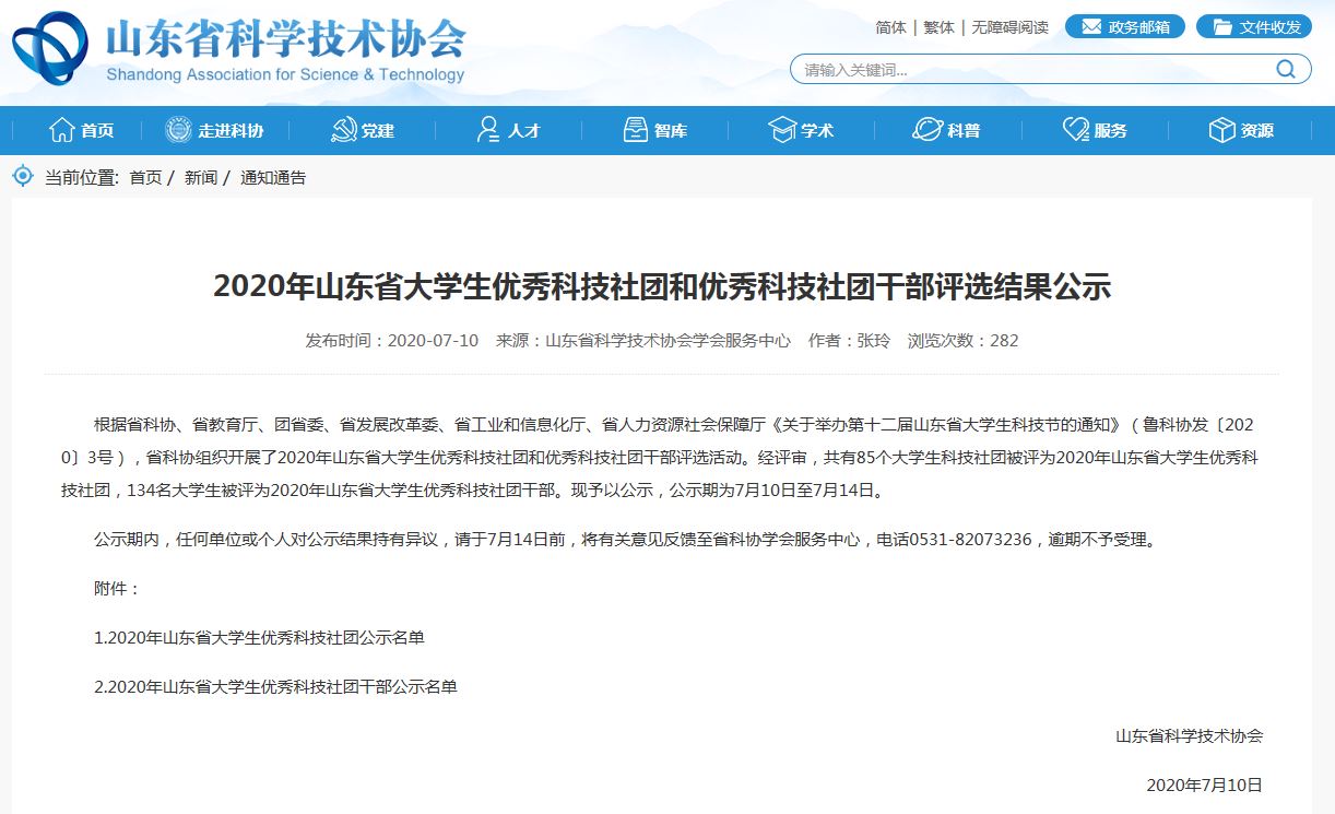 近日,根据省科协、省教育厅、团省委、省发展改革委、省工业和信息化厅、省人力资源社会保障厅《关于举办第十二届山东省大学生科技节的通知》(鲁科协发〔2020〕3号),省科协组织开展了2020年山东省大学生优秀科技社团和优秀科技社团干部评选活动。经评审,共有85个大学生科技社团被评为2020年山东省大学生优秀科技社团,134名大学生被评为2020年山东省大学生优秀科技社团干部。电子游戏推荐官网刁旭同学名列其中。