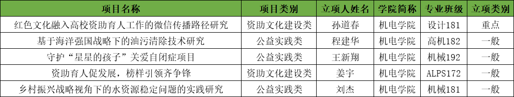 申报的《红色文化融入高校资助育人工作的微信传播路径研究》课题获得学校重点项目立项,《乡村振兴战略视角下的水资源稳定问题的实践研究》等4项课题获得学校一般项目立项。