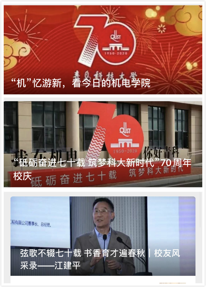 积极开展“七秩机忆 智创一流”主题活动,欢庆青科大70周年华诞。