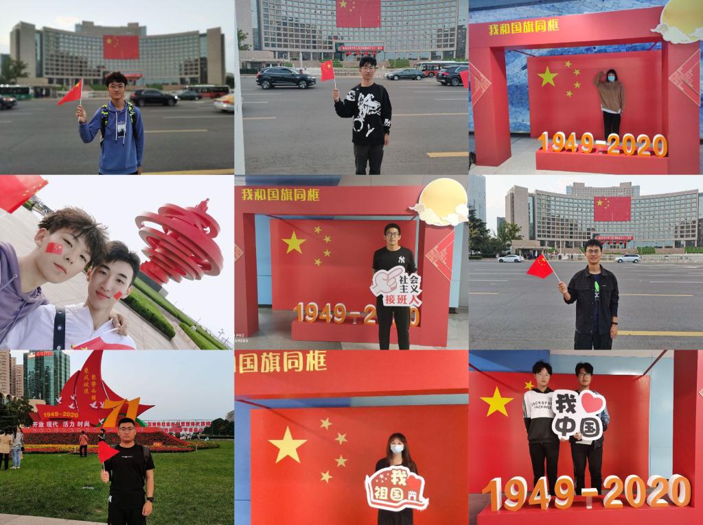 开展以“青春告白祖国,我与国旗同框”为主题的党日和团日活动,表达对祖国的祝福,增强了同学们的民族自豪感,鼓舞了同学为胜利实现中国梦而不断奋斗。学院还开展了“我与国旗合张影”“红歌唱祖国,献礼新时代”“向国旗宣誓,为祖国送祝福”等活动。一张张幸福的合影,挥舞着五星红旗,表达了同学们对祖国的热爱,共同祝愿祖国。