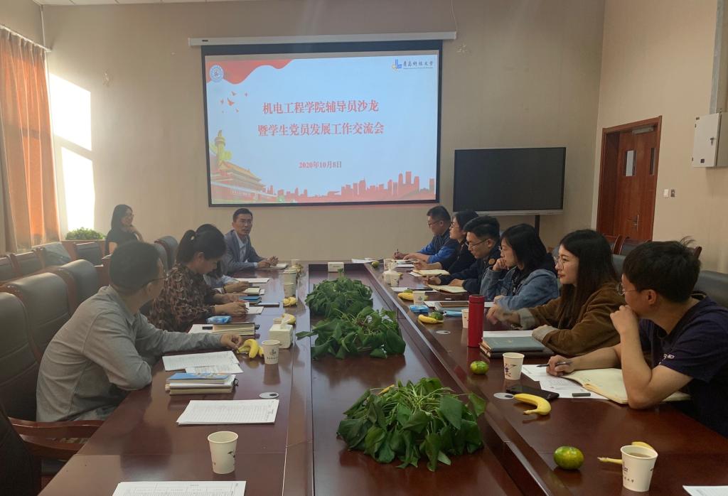 于机电楼518会议室组织开展辅导员沙龙暨学生党员发展工作交流会。院党委副书记肖强、院团委书记王作辉及学院全体辅导员参加了此次交流会。