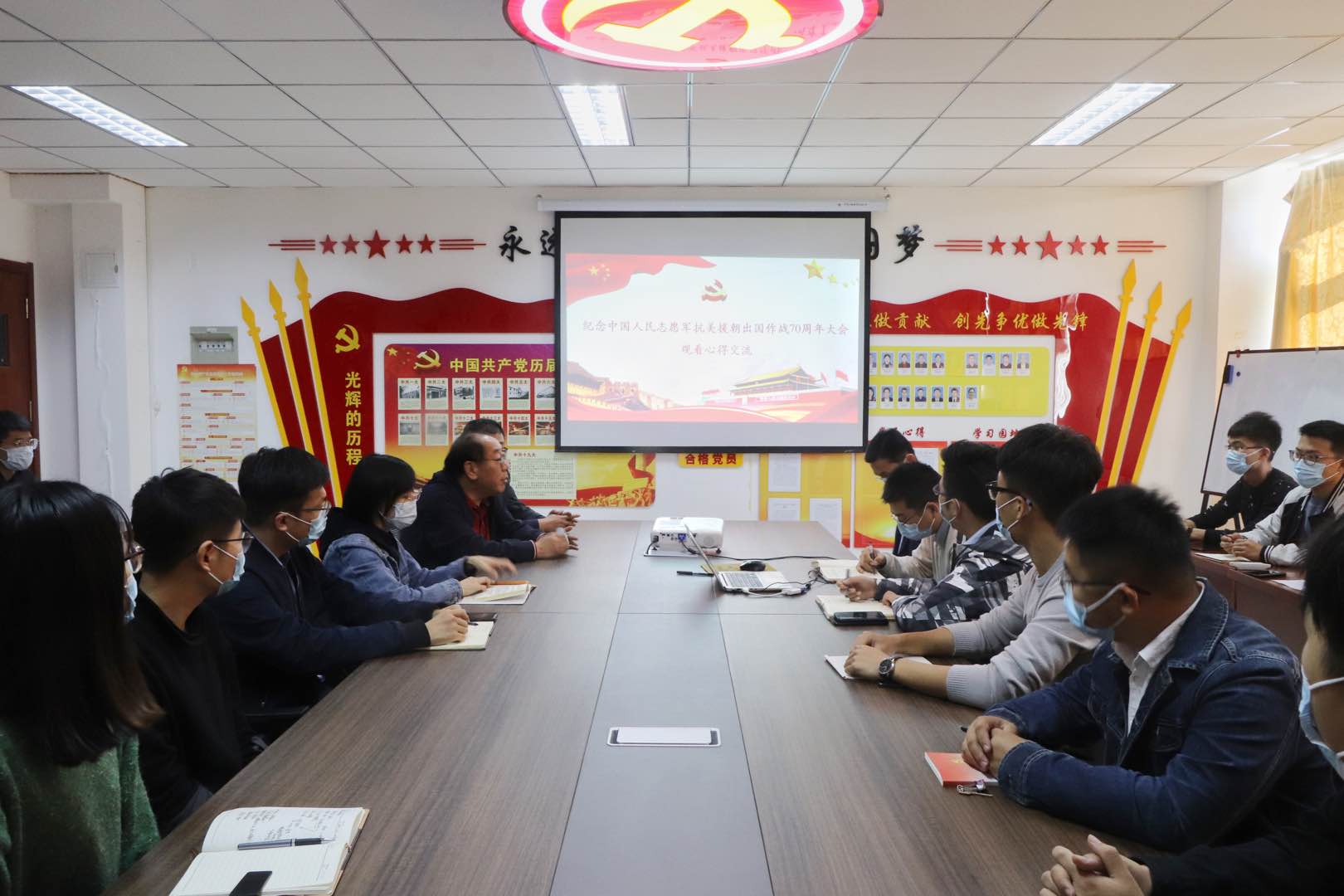 学院党委书记孙立军、党委副书记兼副院长肖强到本科生第一党支部、本科生第二党支部与党员同志们一起观看了大会直播,直播结束后,孙立军分享了自己的心得体会,他指出,习近平总书记在大会上的重要讲话立意深远、内涵丰富,要深入学习重要讲话精神,从革命先辈的英雄事迹中感悟伟大的爱国主义精神、伟大的革命乐观主义精神、伟大的革命忠诚精神和伟大的抗美援朝精神。同时,孙立军寄语青年党员,强调,青年党员作为党的新生力量,朝气蓬勃,目前我们正站在实现“两个一百年”奋斗目标的历史交汇点上,第一个百年奋斗目标胜利在望,第二个百年奋斗目标也会在你们青年一代的努力拼搏下终将实现;作为青年党员,要坚定信心,笃信前行,用实际行动践行爱国主义精神,不断为党和国家的发展作出应有的贡献;作为青年党员,要努力学习,加强理论武装,结合学院“‘四史’学习年”系列活动,要明白党和国家的伟大成就是怎么来的,不断从历史中汲取前行的动力,从感悟革命精神的过程中汲取信仰之“钙”,争做一名信念坚定的青年马克思主义者。