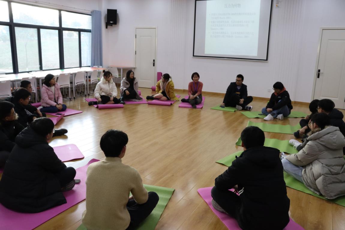 在心理咨询中心开展“心灵有约”减压团辅沙龙,活动由学校心理咨询中心李海玲老师带领成员们进行减压。