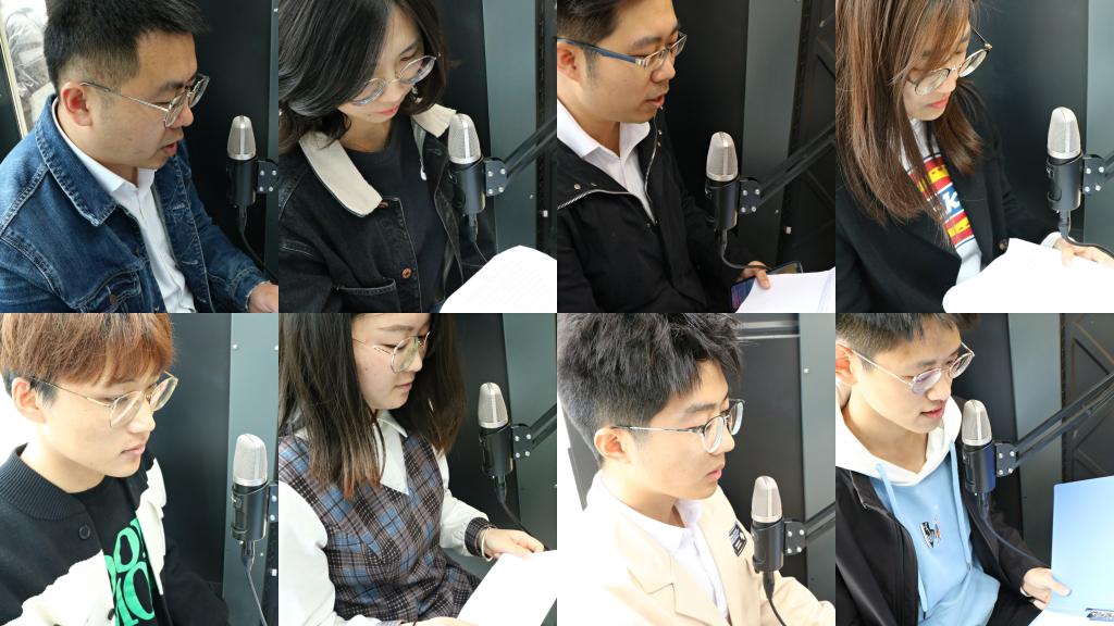 师生在朗读亭开展学校开展“学党史 迎五四 诵经典”主题活动。
