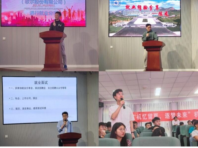 朋辈情——汲养精华话成长,采撷硕果赢未来。举办“研”途有你——考研经验分享会,“就”赢未来——典型就业代表经验交流会等,邀请获批11项发明专利及实用新型专利、7篇软件著作权、2篇二区SCI论文、1篇一区SCI论文在投的机械工程研究生陈龙,山东省大学生青春贡献奖罗浩宇,青岛市百优大学生任月浩,学校十大优秀学生王茂灿等青年榜样,讲述身边成长故事,分享榜样成长历程,发挥优秀毕业生的示范引领作用,激励广大学生奋发图强、积极进取,发扬“科大精神”、践行“橡胶品格”、贯彻“五有理念”。学院组织开展了毕业生爱心捐赠活动,为希望小屋建设出一份力。
