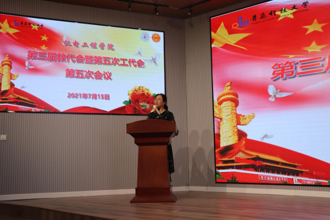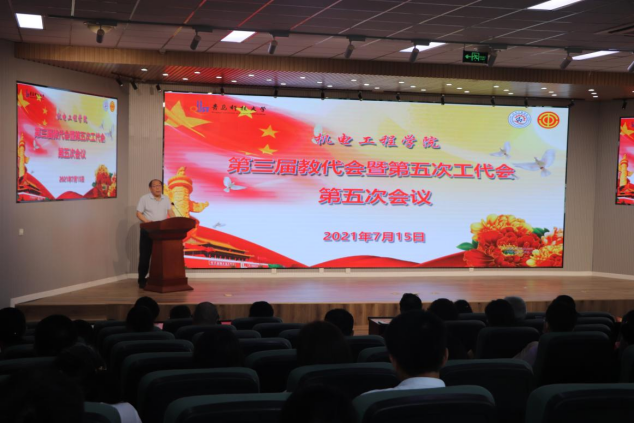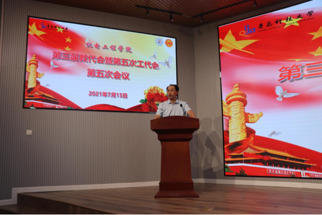 第三届教代会暨第五次工代会第五次会议在D3楼530会议室举行。学院党委书记孙立军,学院院长何燕、学院党政领导班子成员、教师代表及工会会员代表出席了大会,大会由学院党委书记孙立军记主持。