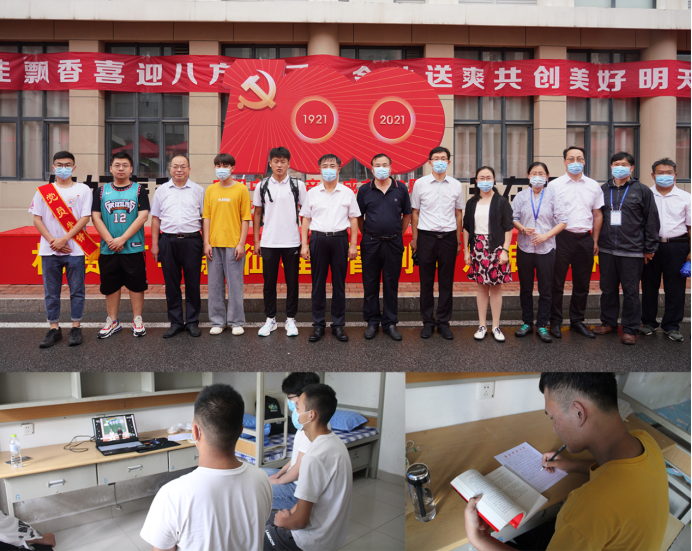 系统部署、礼赞时代——引导学生“立大志”。学院党政领导班子成员召开专题会议,协调、部署新生入学事宜,明确任务、压实责任,有条不紊地推进学院迎新工作。今年是中国共产党成立100周年,设置迎新红毯,学生经“机赞百年 智创辉煌”迎新拱门,来到建党100周年标志合影板。组织学生读《习近平与大学生朋友们》等书籍,观看《我和我的祖国》等影片,培养学生的家国情怀。