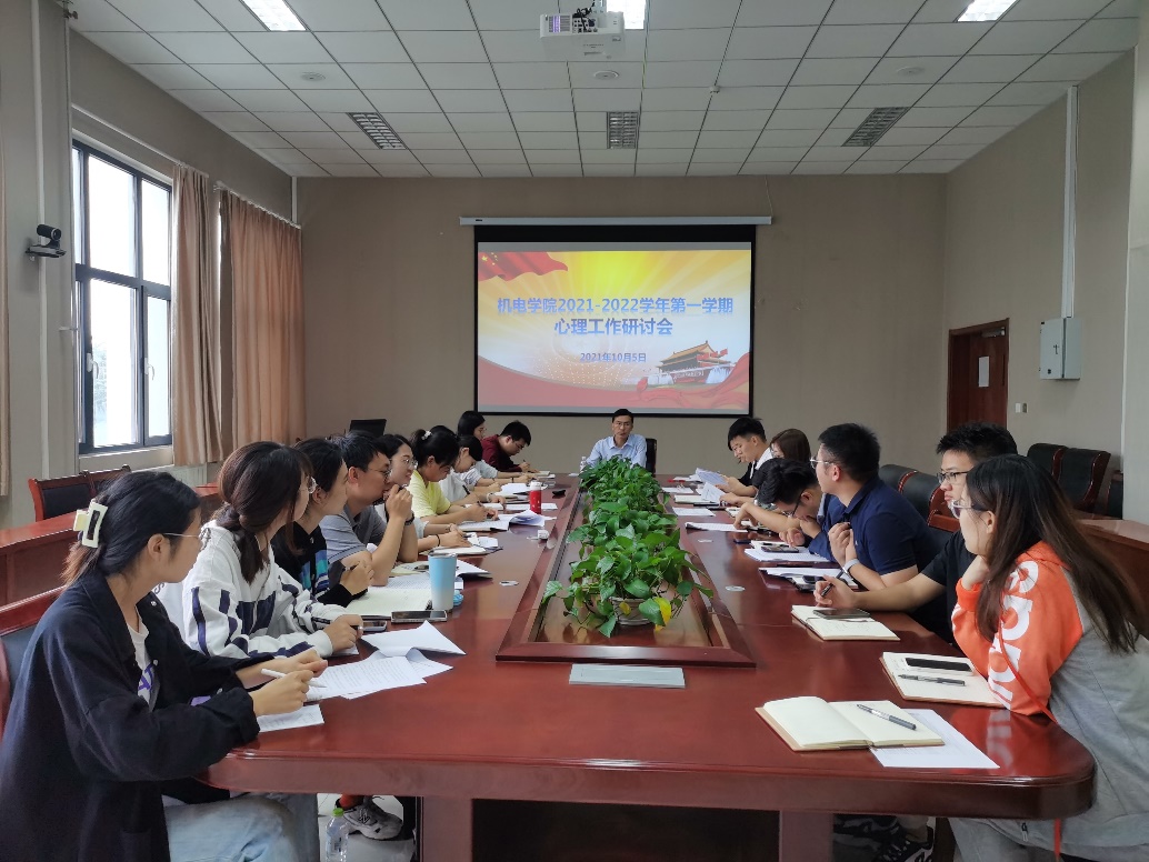 团委在505会议室召开2021-2022学年第一学期心理工作研讨会。学院党委副书记兼副院长肖强主持,团委书记兼学工办主任王作辉及全体辅导员老师参加了会议,会议由学院心理工作站站长郭佩佩主讲。