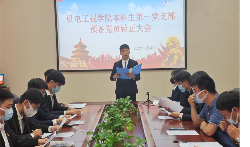 本科生第一党支部在机电518先后三次召开预备党员转正大会。会议由党支部副书记邢坤主持,支部全体党员参加。
