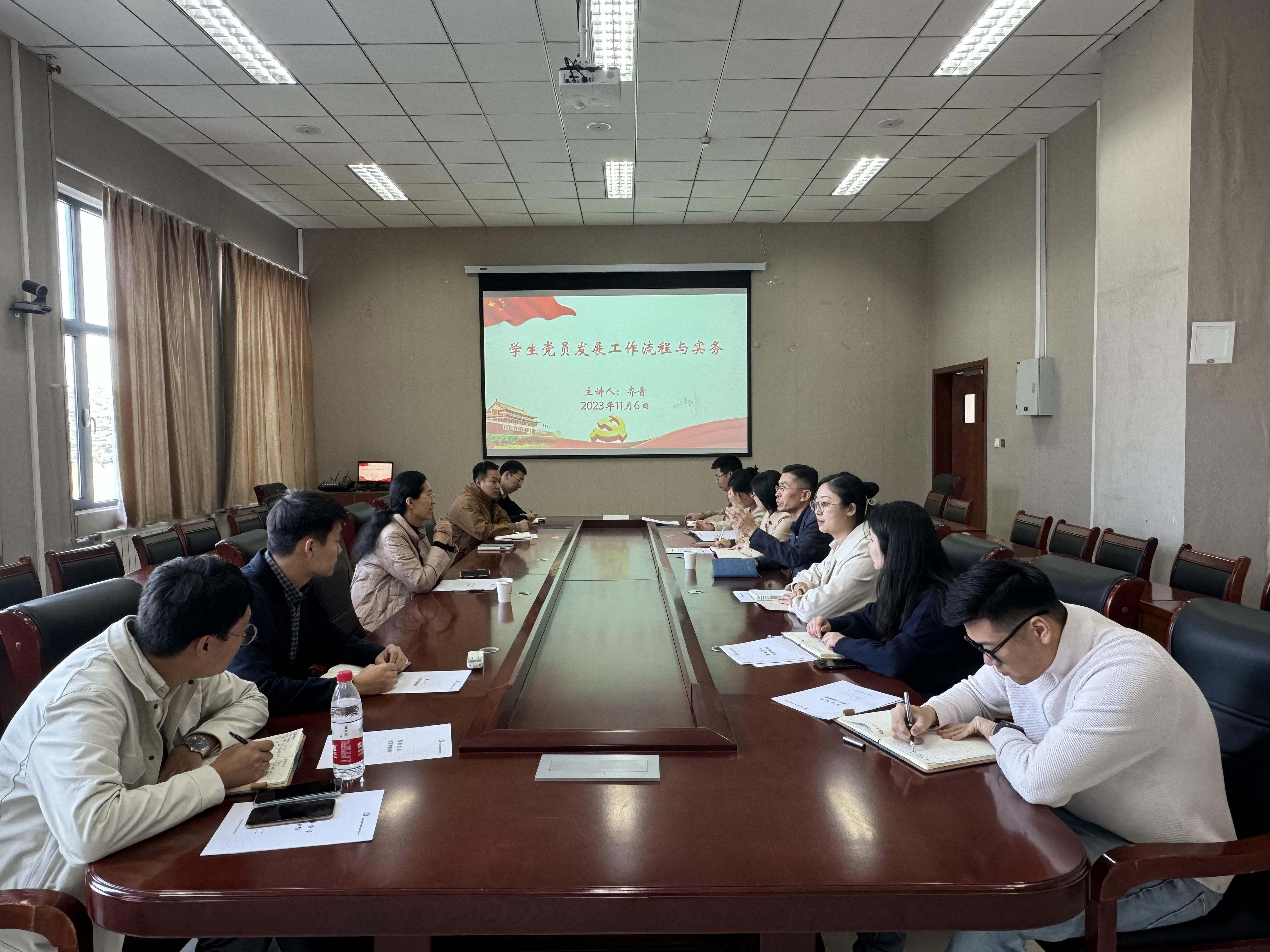 举办“学生党员发展工作流程与实务”专题培训会。本次培训邀请党委组织部副处级组织员齐青做专题培训,学院党委副书记兼副院长肖强主持,学院全体辅导员参会。